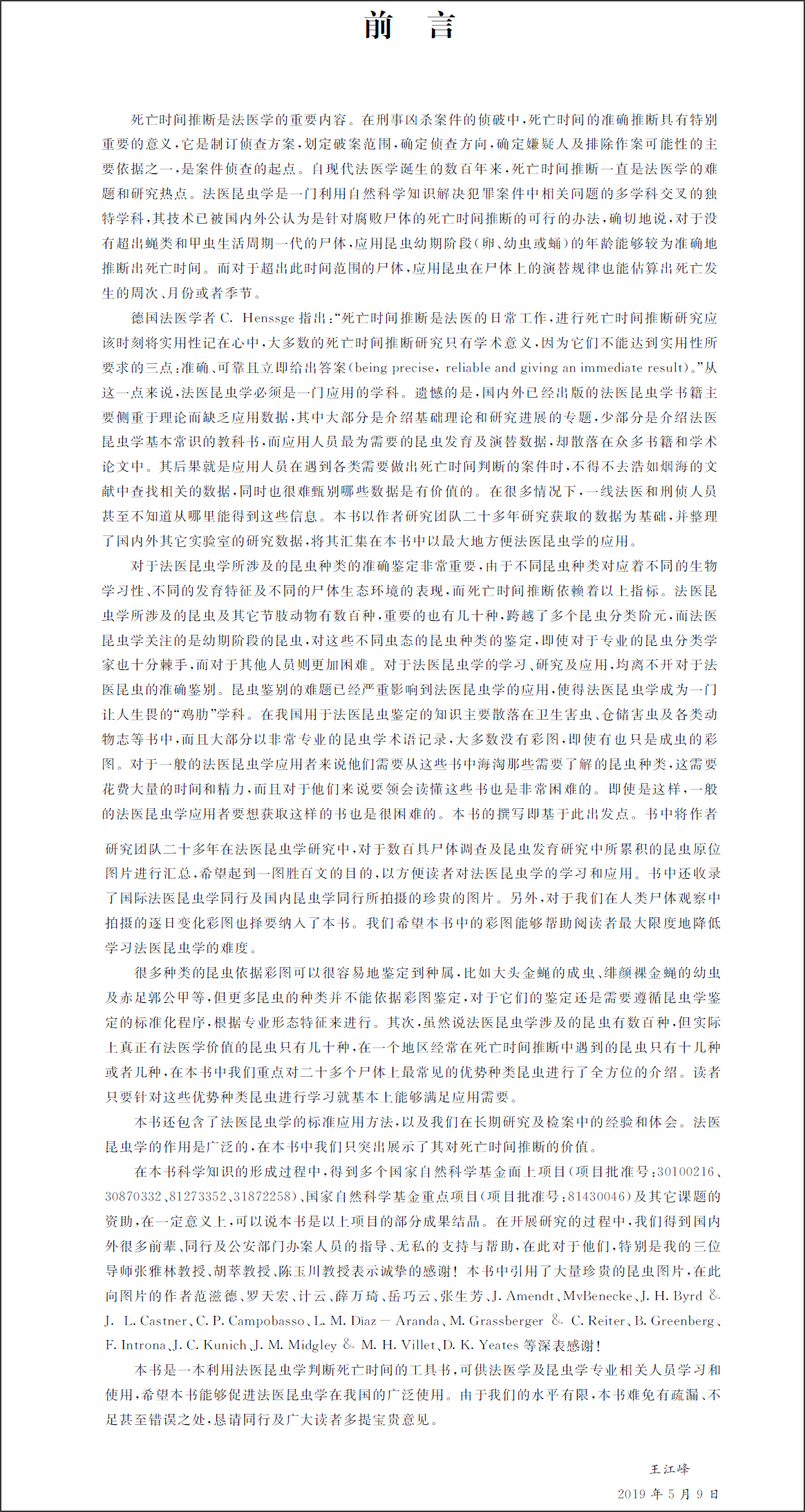 本书对尸体腐败的机理、尸体上的主要变量及尸体腐败形态及昆虫演替有详尽的图片显示及文字说明。